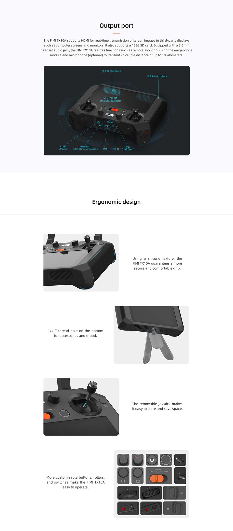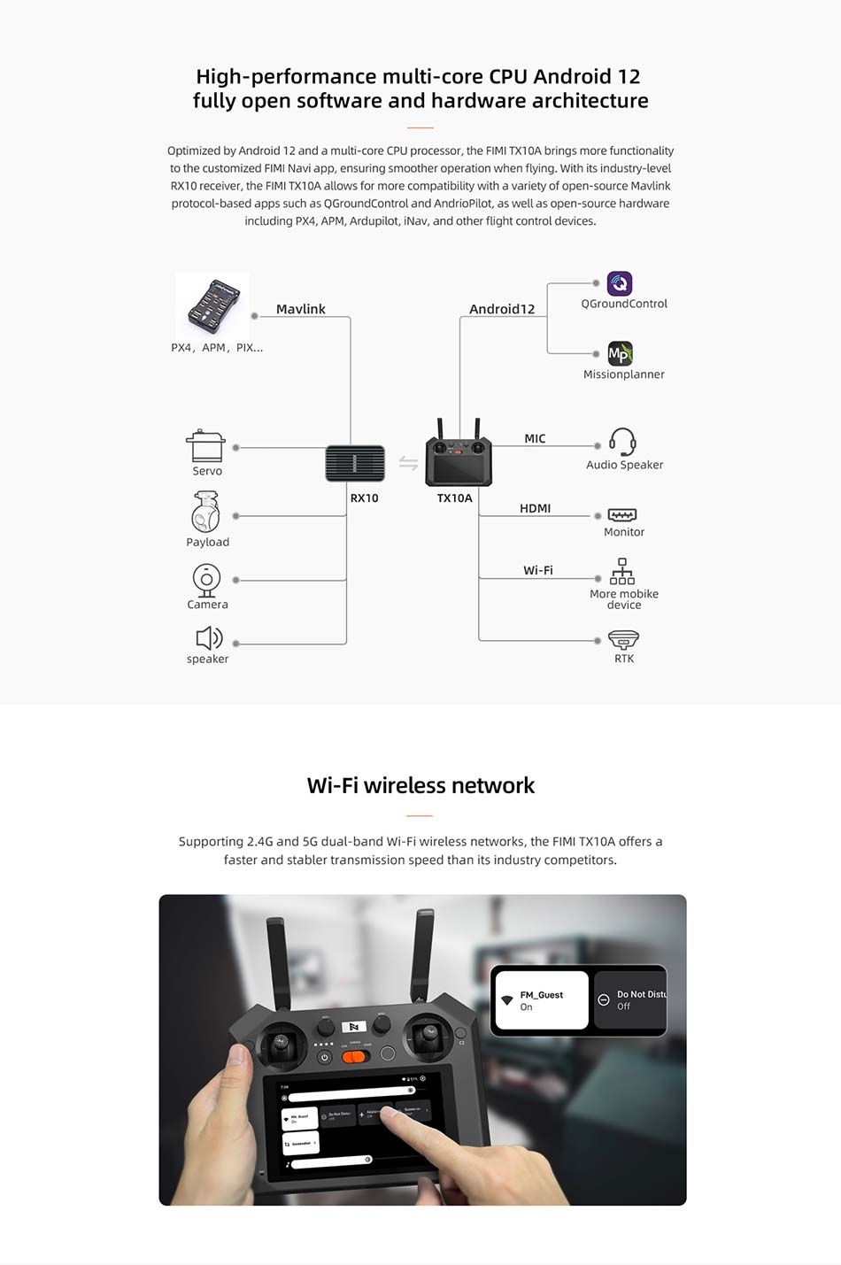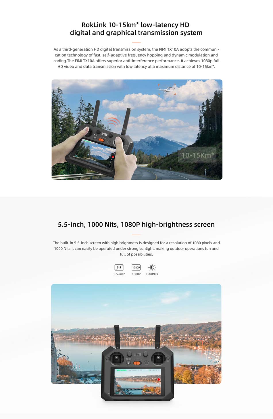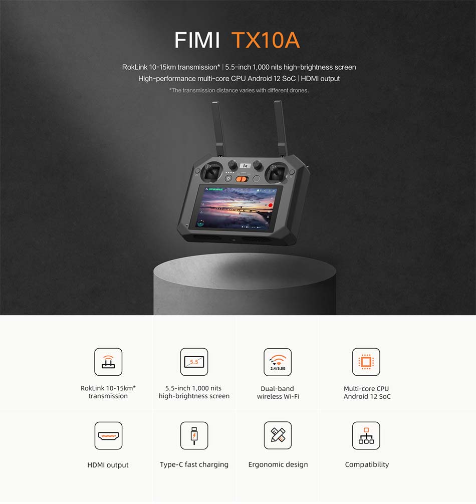 FIMI TX10A Built-in Screen 5.5 Inch 1080P Screen Remote Controller Transmitter RokLink 10-15km Transmission Spare Parts
