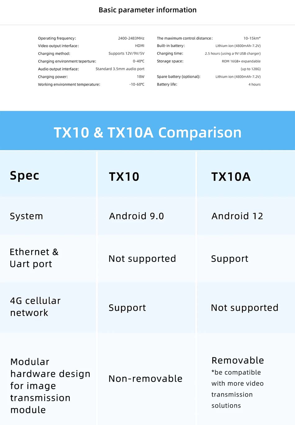 Charging Environment Temperature: 0-40℃ Working Environment Temperature: -10-60℃