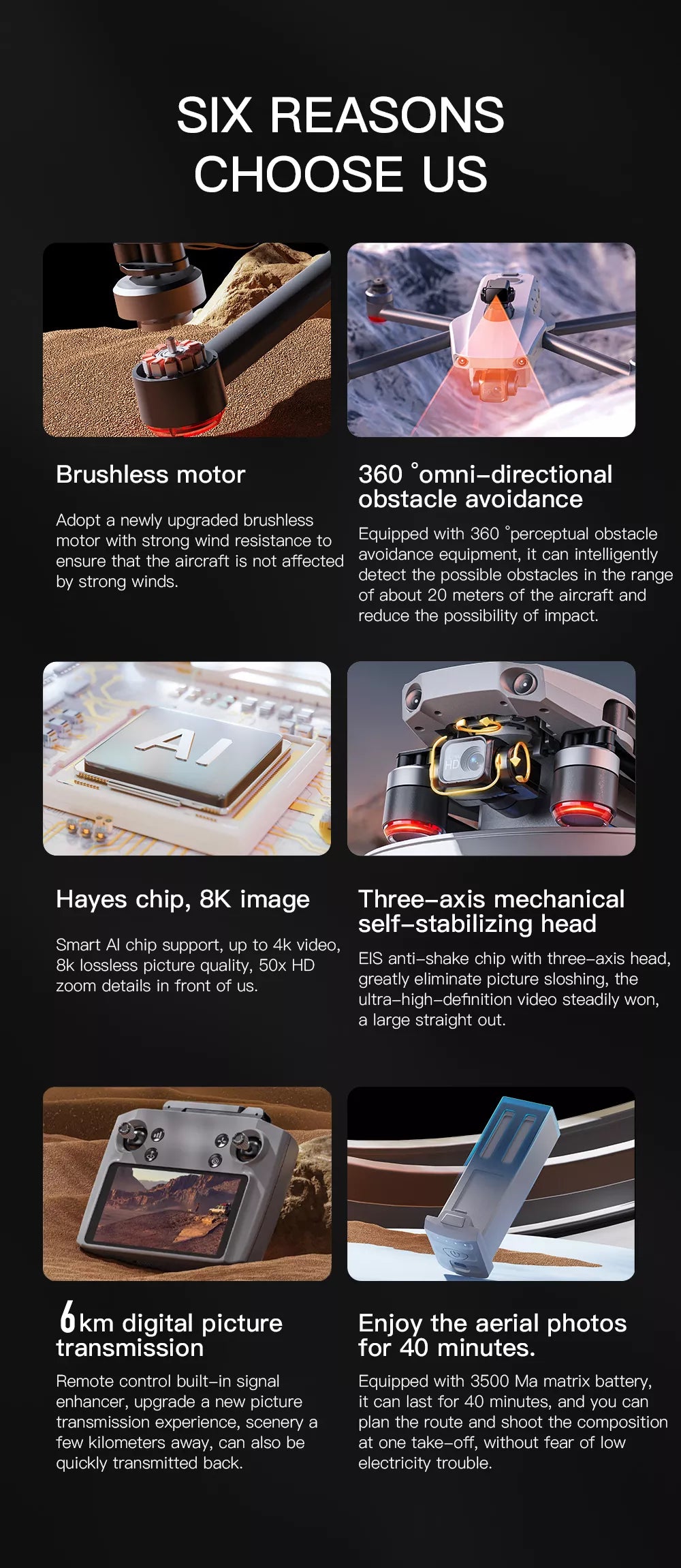 1.  K11 Tubro Drone with Three-axis mechanical stabilization gimbal + electronic stabilization and anti-shake + laser obstacle avoidance