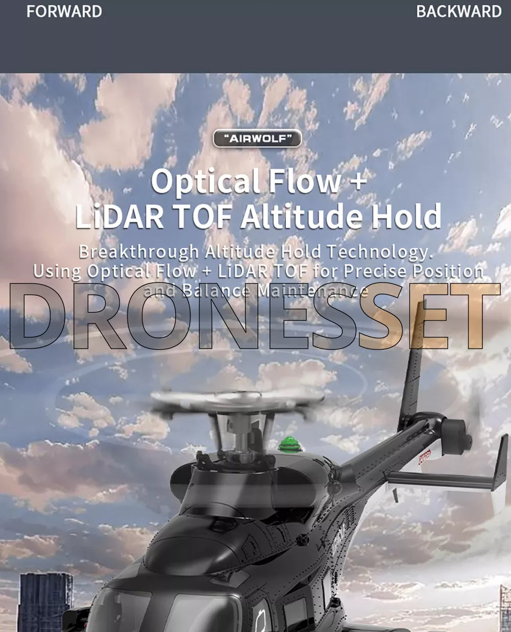 4> YUXIANG F02S Airwolf Helicopter adopts laser radar + lower visual optical flow positioning and height determination system, which is more stable and more accurate in height
