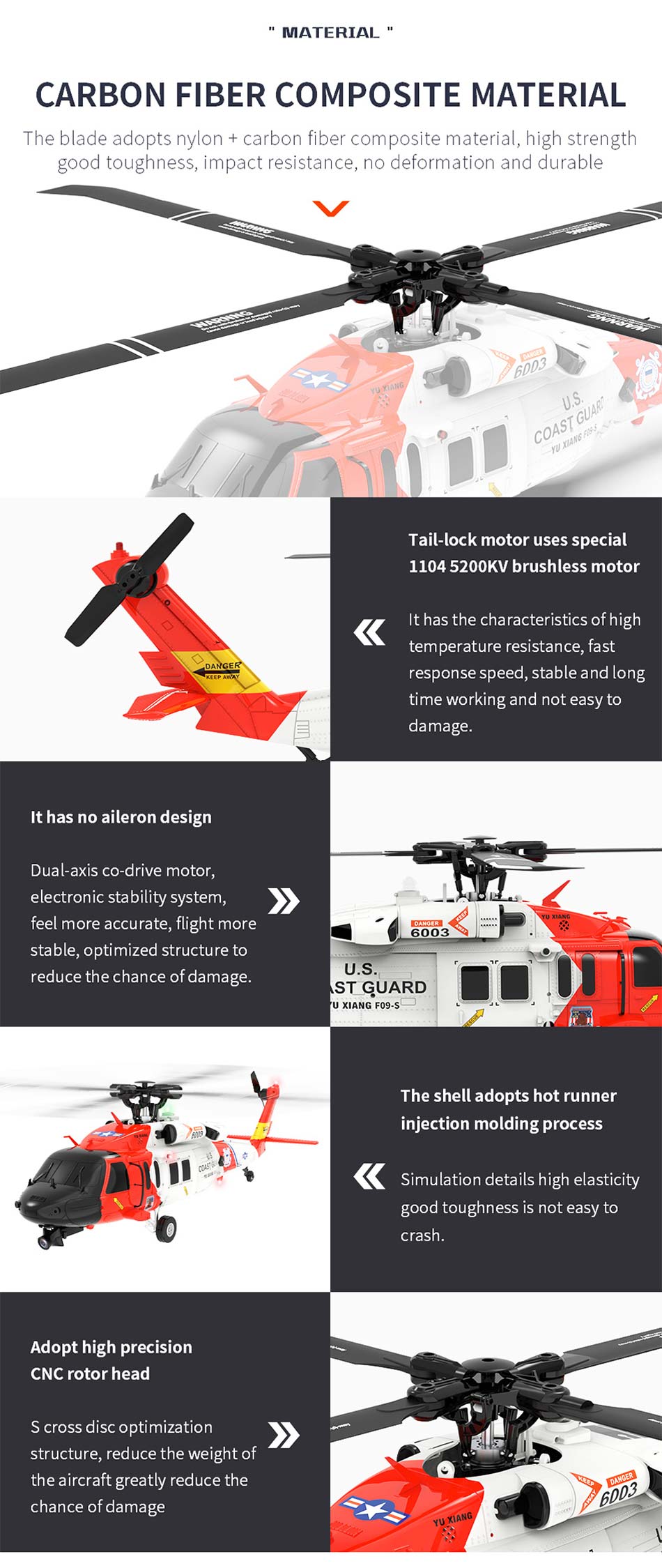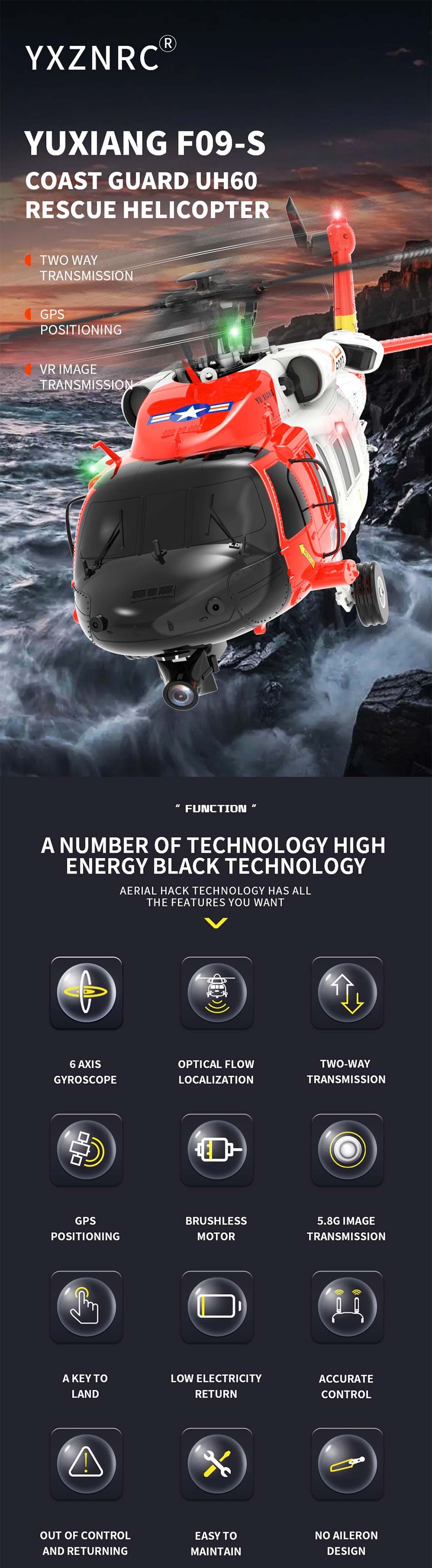 1> YXZNRC F09S According to the U.S. UH60 Black Hawks helicopter, the scale is reduced to 47:1, with high simulation appearance details, cool lights, and movable side door shock landing gear.
