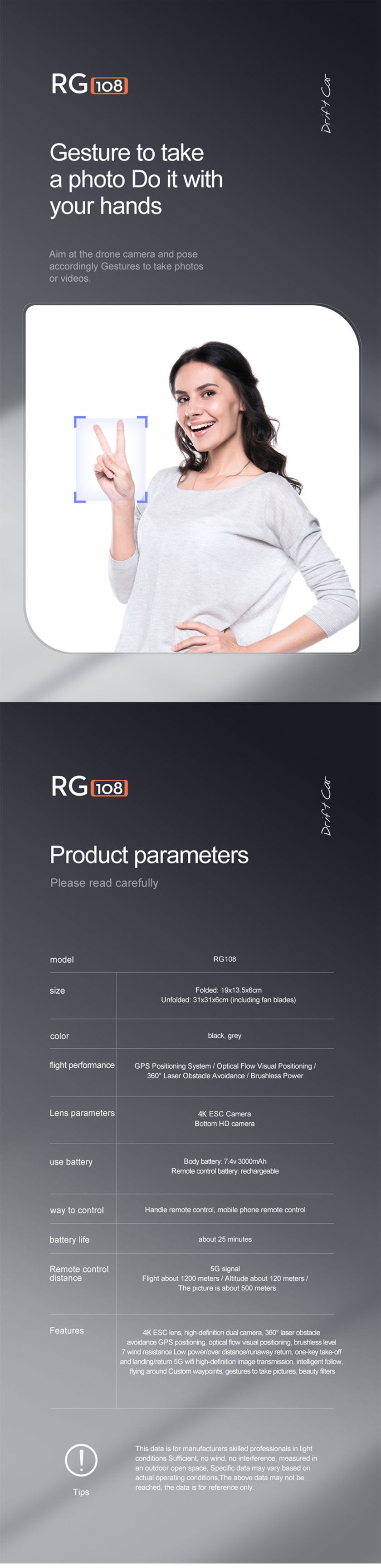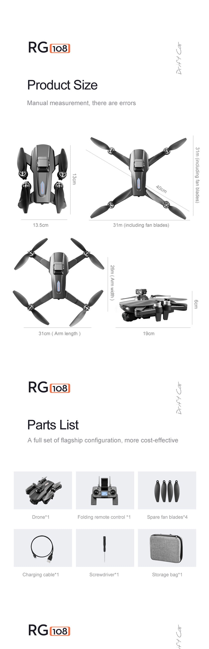 NEW Drone RG108 MAX GPS 4K Dual HD Camera FPV 3Km Aerial Photography Brushless Motor Quadcopter