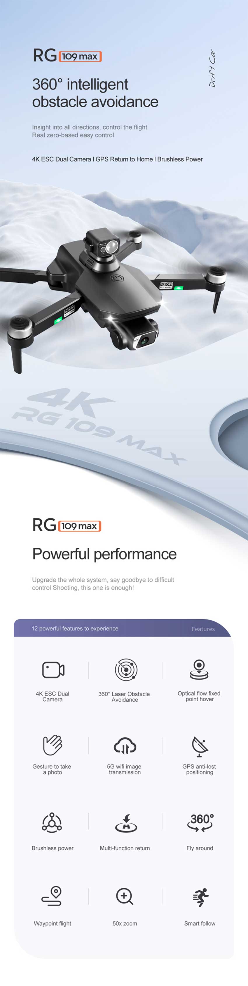 RC Drone RG109 MAX 4K HD Dual Camera GPS 5G WiFi Brushless Motor 360 ° Laser Obstacle Avoidance Quadcopter
