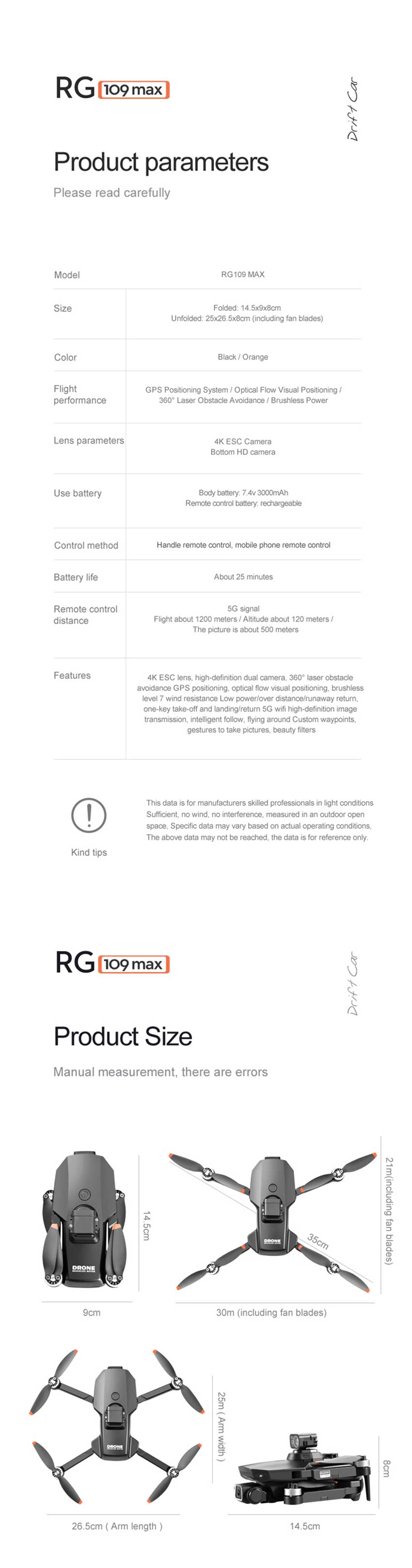 • Product name: Laser Obstacle Avoidance 4K Drone RG109 MAX