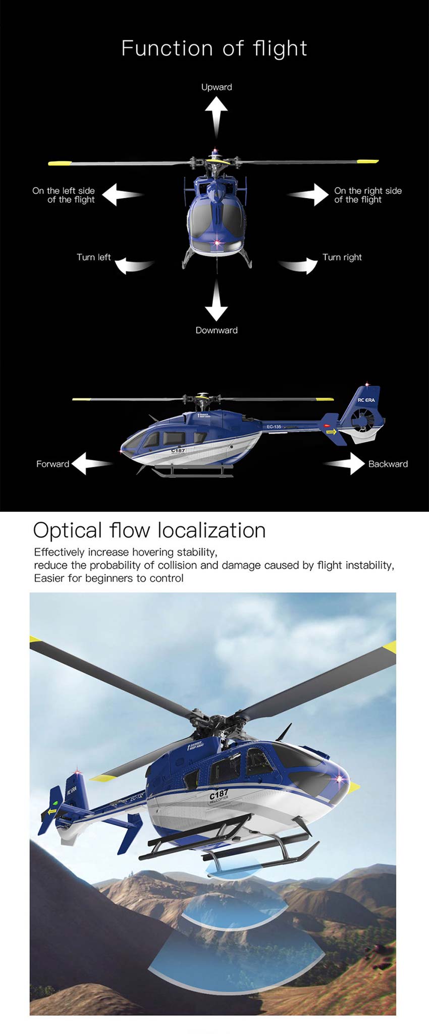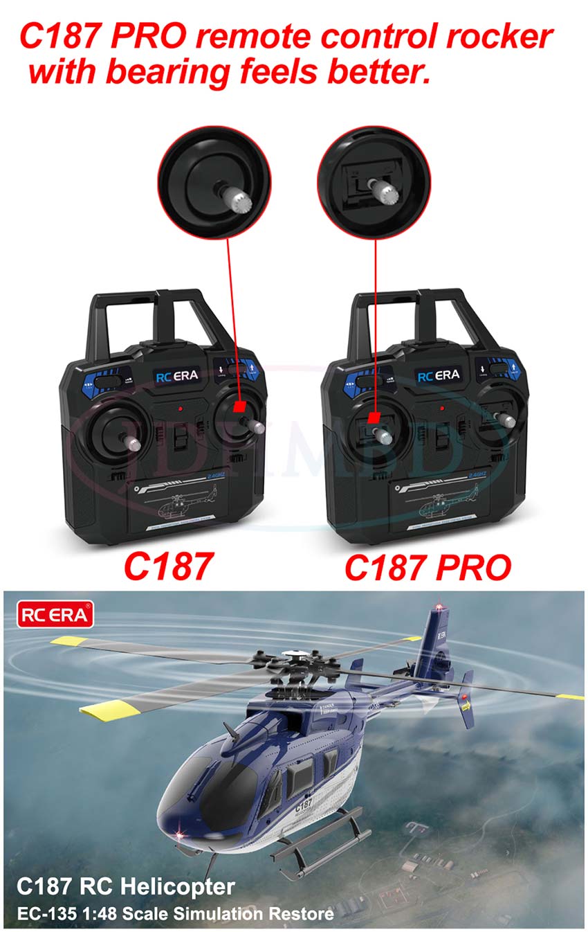 * RCERA C187 PRO version: Equipped with a total bearing 6-channel remote control, more delicate feel and more precise control