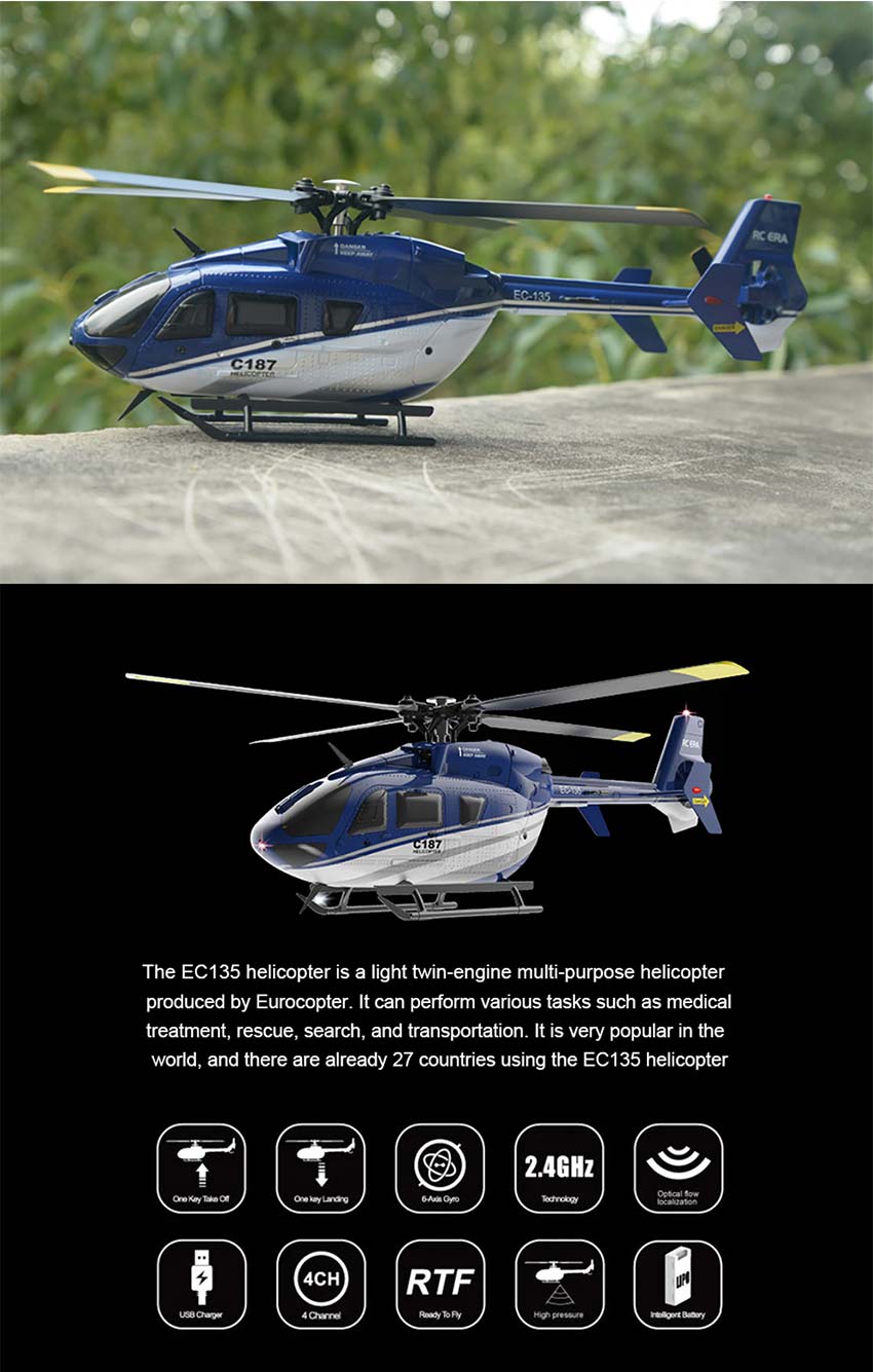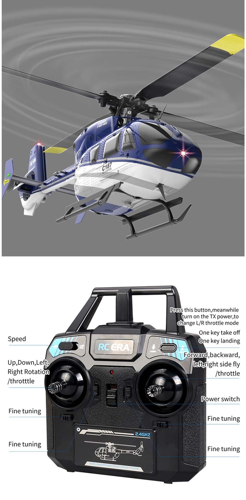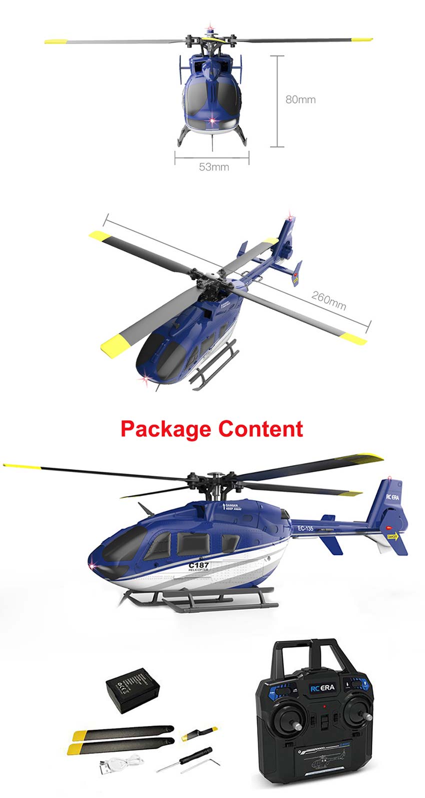 RCERA C187 EC135 RC Helicopter 2.4G 4CH 6-Axis Gyro Altitude Hold Flybarless Scale Helicopter